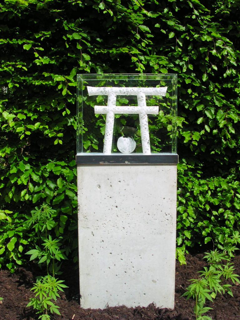 Le thème de l’installation de Miki Nakamura est le chemin de la mariée jusqu’à l’autel en rapport avec l’histoire de cette chapelle privée.